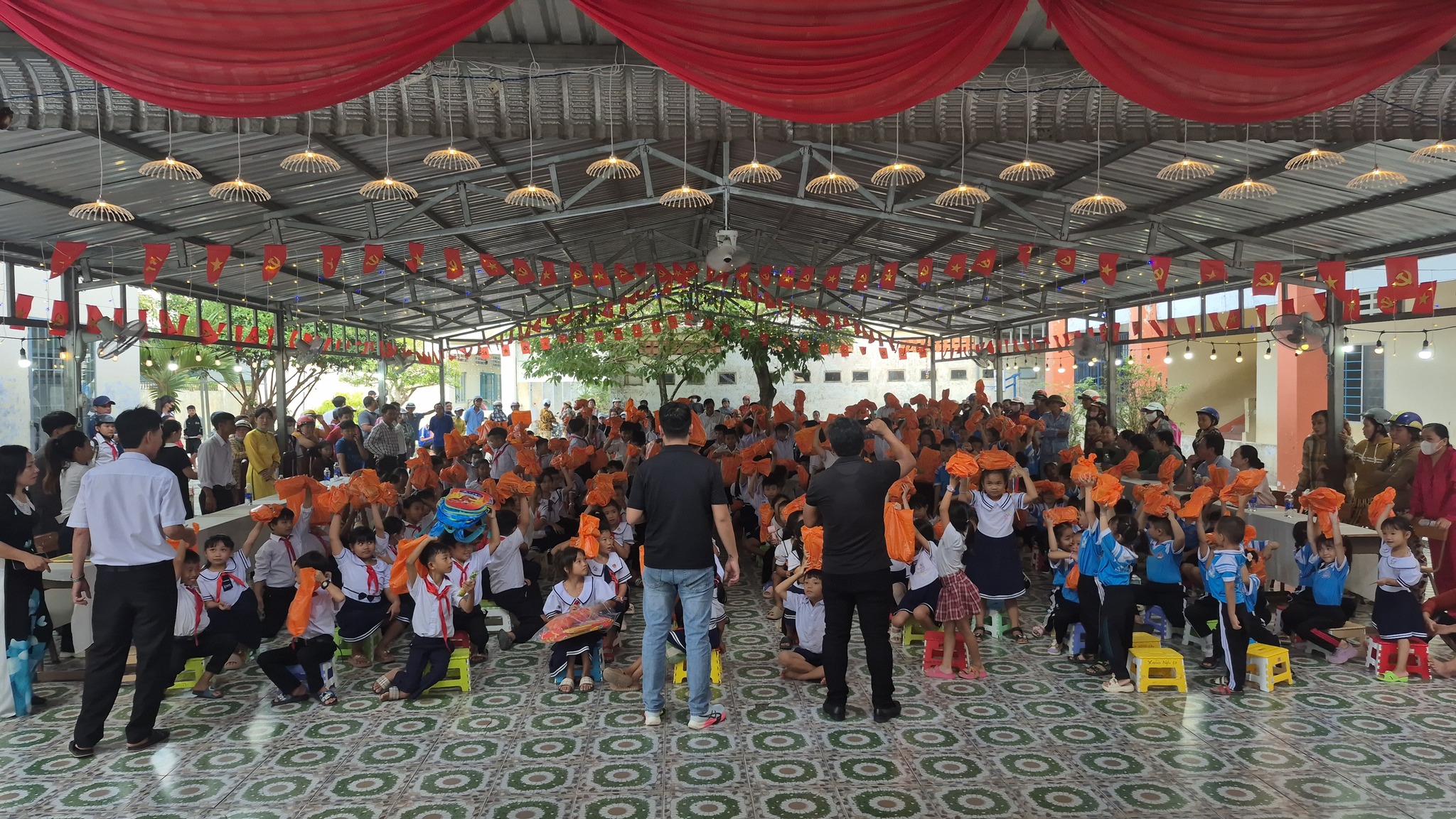 Trong chương trình, các em học sinh của nhà trường đã được tham gia các trò chơi tập thể, nhận quà trung thu như bánh, kẹo, lồng đèn. Đặc biệt, các Anh Chị nhóm Thiện Tâm đã trao tặng 11 chiếc xe đạp, 51 bộ đồng phục, 18 cặp, sắch, đồ dùng học tập, 250 phần quà bánh cho học sinh của nhà trường.
