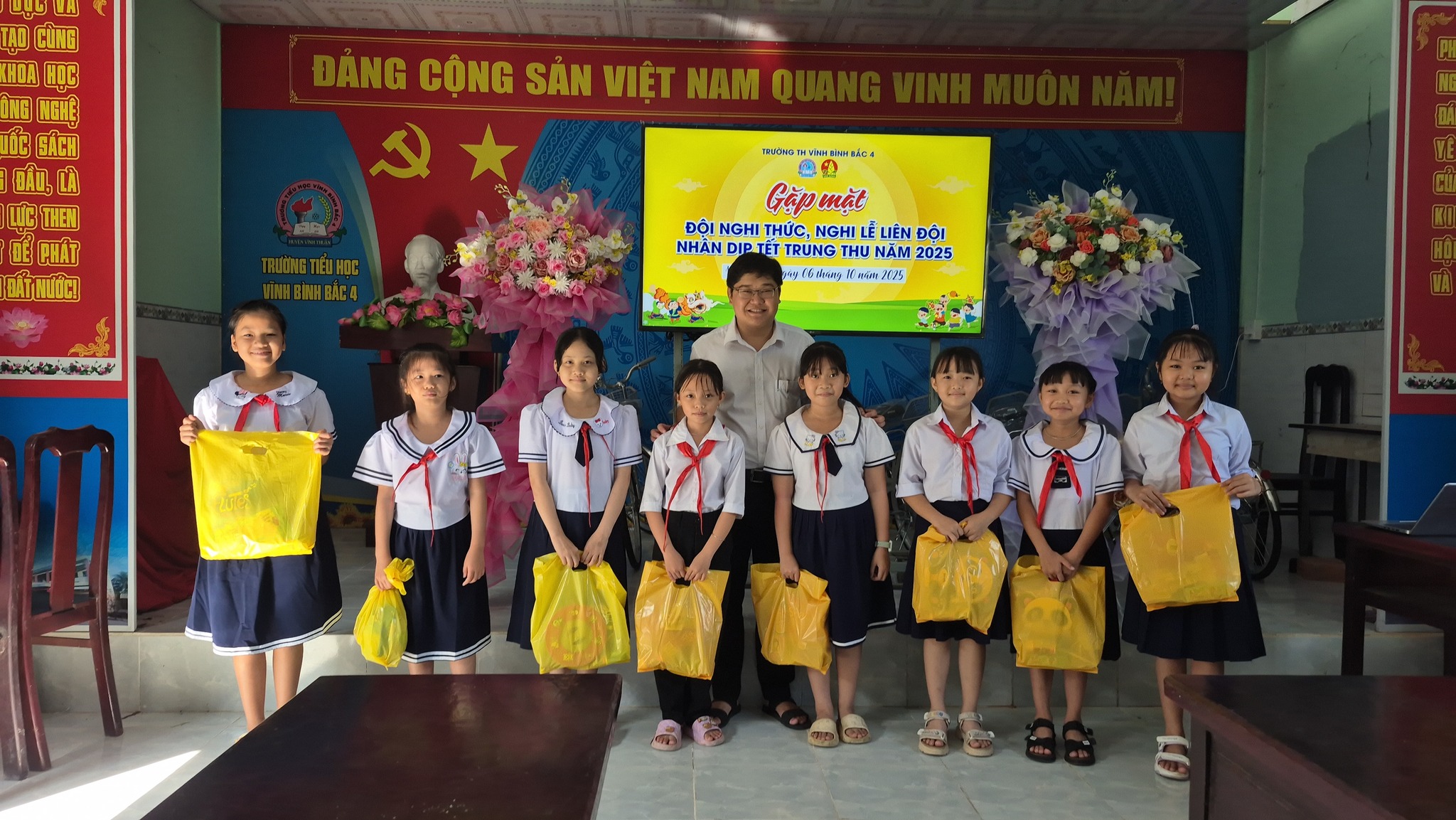 Sáng ngày 06/10/2025, nhân dịp tết trung thu năm 2025, Liên đội trường TH Vĩnh Bình Bắc 4 tổ chức họp mặt thành viên các đội nghi thức – nghi lễ của Liên đội năm học 2025-2026.
